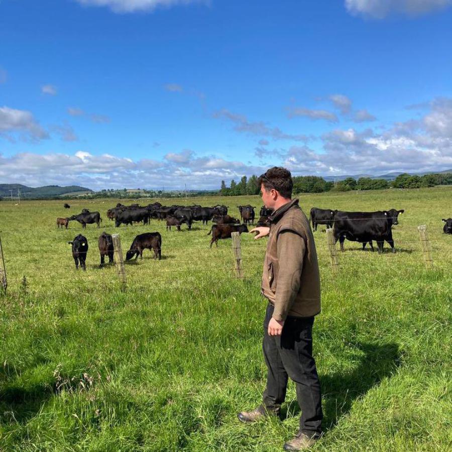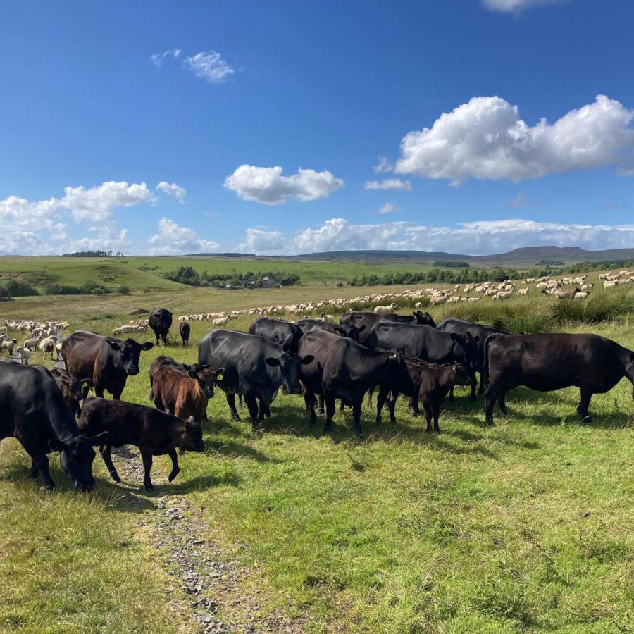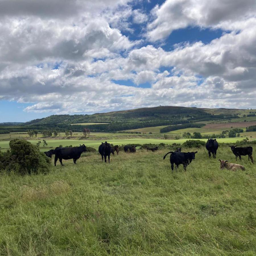 Cattle have been a mainstay of the farm for longer, and pedigree Angus bulls have been sold for a number of years, with 30-40 sold per year. Historically 100 cows were housed over winter with the remaining 150 outwintered on the hill with silage taken to them. The move to deferred grazing and bale grazing has eliminated the need to house the cattle and meant sheds can generate income from other streams. When it comes to Estimated Breeding Values (EBVs), a combination is more important than animals that are extreme in individual traits, a key factor is how cows stand up to outwintering mature size/scale and body condition score. The male youngstock are housed overwinter, and go through a feed conversion trail which is feed into the pedigree database. Youngstock are carried through winter and sold for slaughter before their second winter.
